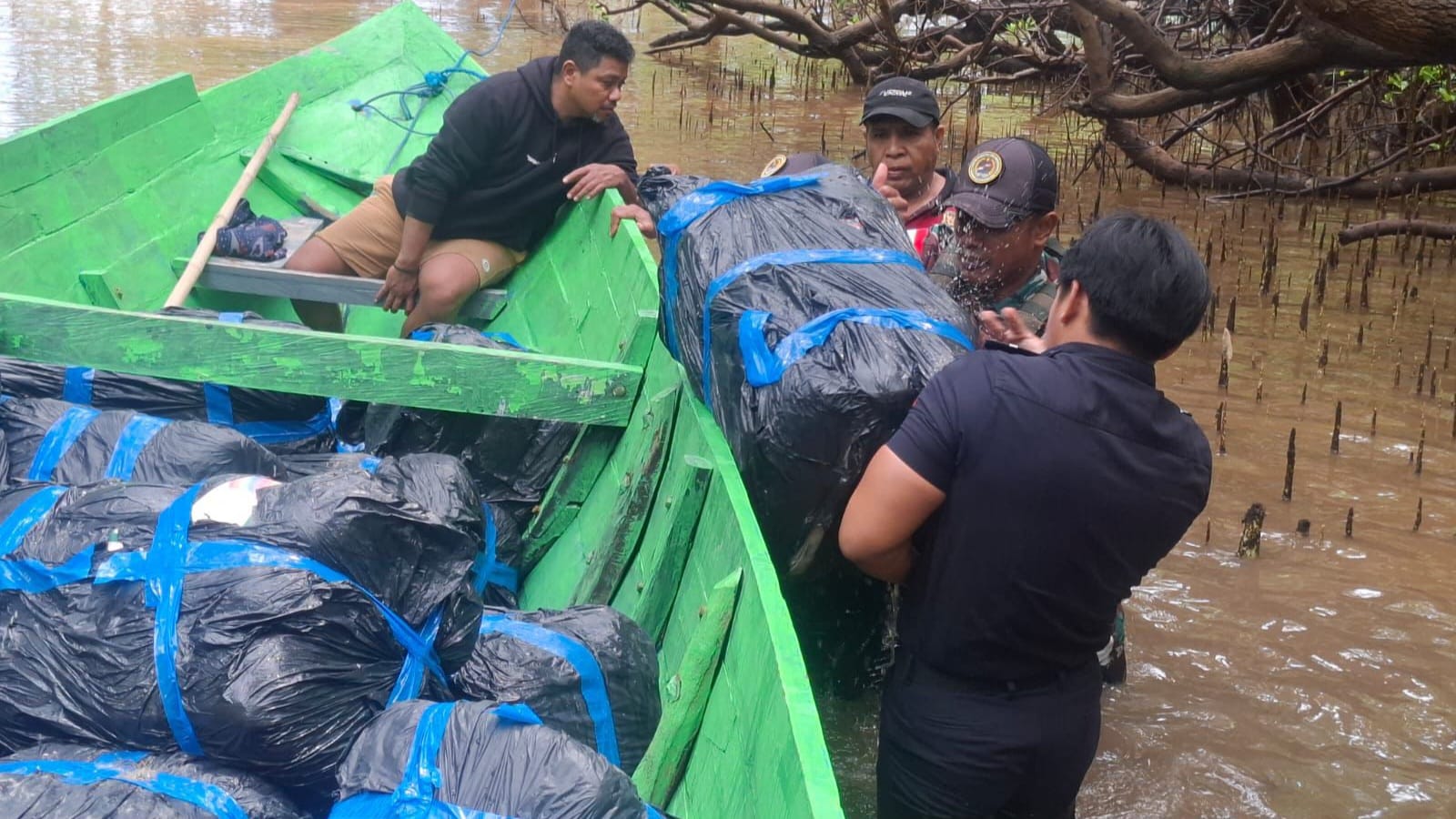 Dari hasil penyisiran di lapangan, tim gabungan akhirnya menemukan sebuah perahu yang bersembunyi di tengah hutan bakau pesisir Pantai Pasir Putih, Desa Kenebibi. Saat dilakukan pemeriksaan, tim menemukan 1 unit perahu bermesin 18 PK jenis Kohatsu yang memuat 47 ballpres (pakaian bekas).