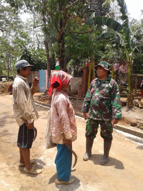 Selain jalan yang sedang diaspal sepanjang 2,3 kilometer, 3 dari 5 orang warga setempat rumahnya sedang dipugar setelah menjadi target pembangunan fisik tambahan TMMD, rehab Rumah Tidak Layak Huni (RTLH). Jadi pelibatan warga juga sangat dinantikan untuk mempercepat bedah rumah tersebut. Terlihat Babinsa, menyapa Dasan (52) dan Turyati (50) petani dan warga Dusun/Desa Durenombo Rt. 1 Rw. 2 Kecamatan Subah.(kodim batang|red|noven)