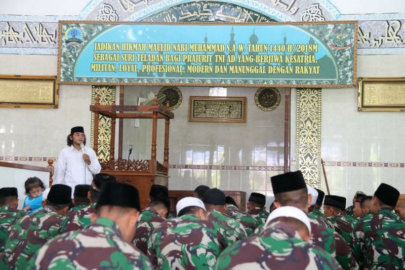 Bapak Kyai Gus Ali Munabah, S.Pd.I dalam ceramahnya menyampaikan supaya meneladani Rasulullah Nabi Muhammad SAW dalam kehidupan kita sehari-hari, apa yang beliau ajarkan dapat kita implemntasikan dalam keseharian kita, seperti prajurit TNI dalam melaksanakan tugas apabila diniatkan dengan ikhlas merupakan ibadah dan pahalanya luar biasa, karena TNI lahir dari rakyat dan bersama rakyat TNI kuat.(penkostrad|red)