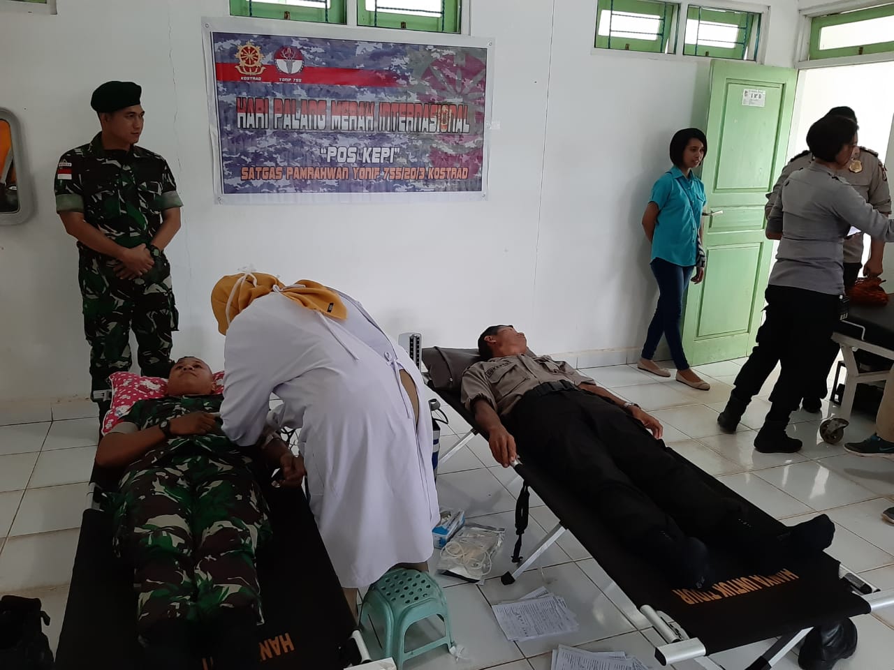 Mappi – Dalam rangka memperingati Hari PMI yang jatuh pada tanggal 8 Mei 2019, Pos Satgas Yonif 755 Kostrad melaksanakan kegiatan donor darah guna membantu masyarakat yang sedang membutuhkan darah di Kab. Mappi.
