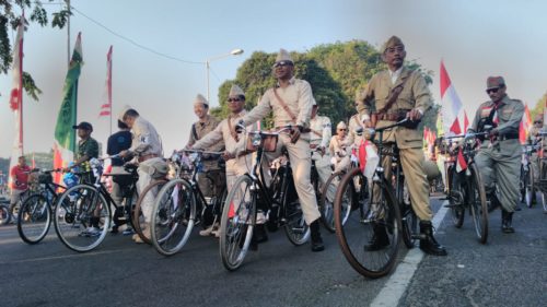 Ada yang menarik selama berlangsungnya car free day tersebut. Para peserta car free day, di wajibkan untuk menggenakan kostum layaknya seorang pejuang.