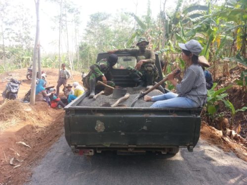 Dengan menggunakan mobil dinas, Serka Suroso bersama Warga masyarakat Desa Durenombo menuju lokasi proyek. Walaupun perjalanan yang ditempuh tidak terlalu jauh dari desa Durenombo, kondisi jalan sudah terlihat hasilnya, itu sangat menguntungkan bagi warga dan pedagang sayur keliling yang menggunakan motor, Jum’at (2/11/18).