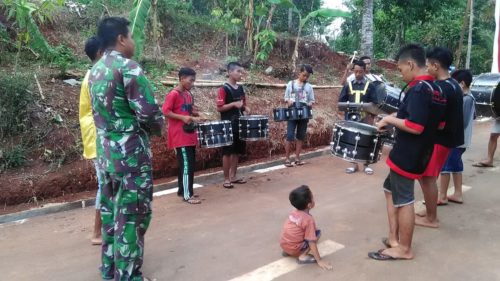 Batang – Tak hanya melakukan pekerjaan fisik TMMD semata,guna mempersiapkan upacara yang sebentar lagi di gelar,satgas TMMD reg 103 Kodim Batang melatih pemuda dan pemudi Desa Durenombo berlatih Drumband,bertempat di Desa Durenombo Kecamatan Subah Kabupaten Batang.Selasa(30/10/18)