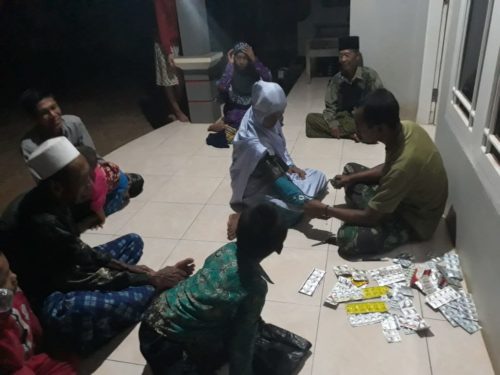 Praka Heru menyamapaikan bahwa prajurit TNI dimanapun berada selalu menjadi pelindung rakyat karena kami berasal dari rakyat dan untuk rakyat,sehingga disini kami berikan apa yang dibutuhkan warga,seperti halnya warga yang berobat kami layani dengan gratis. “Adapun yang berobat kali ini mbah Haji Raibin (70) keluhan sakit pinggang,mbah Daim (65) keluhan kepala sering pusing,ibu Raminah (55) keluhan meriang,panas dingin dan ibu Mariah (50) keluhan flu dan batuk,semua kami obati dengan gratis semoga lekas sembuh”,tuturnya.