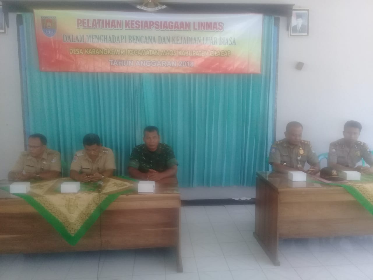 Hal itu dijelaskan Danramil 07/Maos Kodim 0703/Cilacap Kapten Inf Joko Yunanto saat menghadiri kegiatan Pelatihan Kesiapsiagaan Linmas” dalam menghadapi bencana dan kejadian luar biasa di Balai Desa Karangkemiri Kecamatan Maos, Senin (18/2).