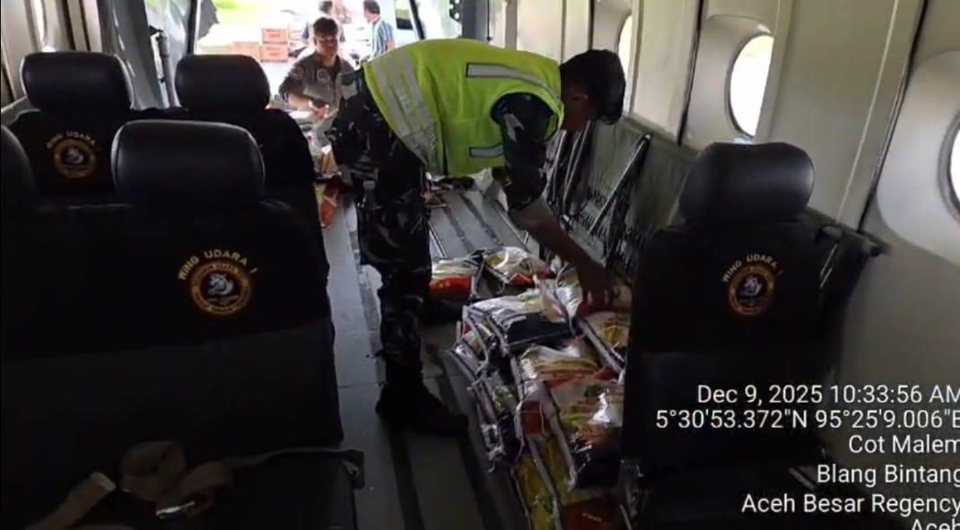 Banda Aceh, 9 Desember 2025 — Pesawat udara jenis NC 212-200 Aviocar milik TNI AL dengan nomor lambung U-6211 hari ini sukses melaksanakan misi Dukungan Logistik mengangkut lebih dari satu ton bahan pokok penting untuk didistribusi ke wilayah terpencil di Aceh. Selasa (9/12). Operasi penerbangan ini bertujuan memastikan ketersediaan bahan pokok bagi masyarakat di wilayah terpencil.