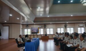 PB | Surabaya Memasuki hari kedua 125 Peserta Pembinaan Ketahanan Wilayah (Bintahwil) Komando Armada RI Kawasan Timur (Koarmatim) Tahap II tahun 2016 menerima materi Wawasan Kebangsaan dari Badan Kesatuan Bangsa, Politik dan Perlindungan Masyarakat (Kesbanglinmas) Kota Surabaya yang disampaikan oleh Bapak Soemarno, S.H.,M.Hum., berlangsung di Gedung Pulau Gundul Komando dan Latihan Armada RI Kawasan Timur (Kolatarmatim), Surabaya. Selasa (25/10/2016). Dalam kegiatan tersebut, Bapak Soemarno, S.H., M.Hum., yang sehari-hari menjabat sebagai Kakesbangpol Dan Linmas menyampaikan bahwa pentingnya pembinaan kejuangan atau kebangsaan melalui Wawasan Kebangsaan menentukan cara suatu bangsa mendayagunakan kondisi geografis negara, sejarah, sosiobudaya, ekonomi dan politik serta pertahanan keamanan dalam mencapai cita-cita dan menjamin kepentingan nasional.