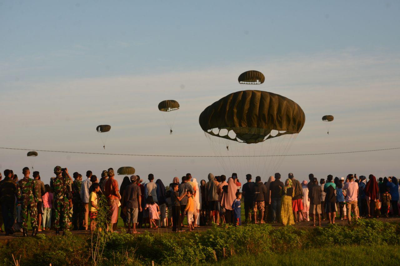 Maros – Dalam rangka meningkatkan kemampuan dan keterampilan sebagai prajurit Lintas Udara, prajurit Yonif Para Raider 432 Kostrad melaksanakan latihan terjun penyegaran statik di Desa Simbang, Kecamatan Simbang, Maros, Sulawesi Selatan (07/05/2019).