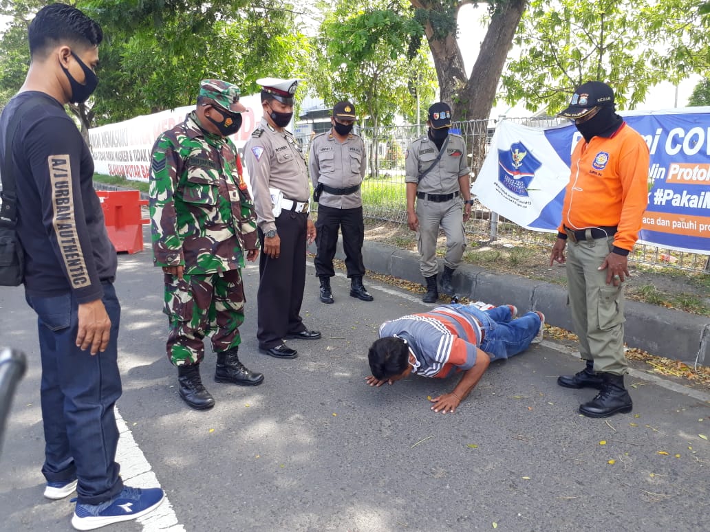 Hasil kegiatan itu petugas menjaring masyarakat tidak pakai masker 9 orang dan diberi tindakan/sanksi oleh Satpol PP berupa hukuman sosial ( pus up )