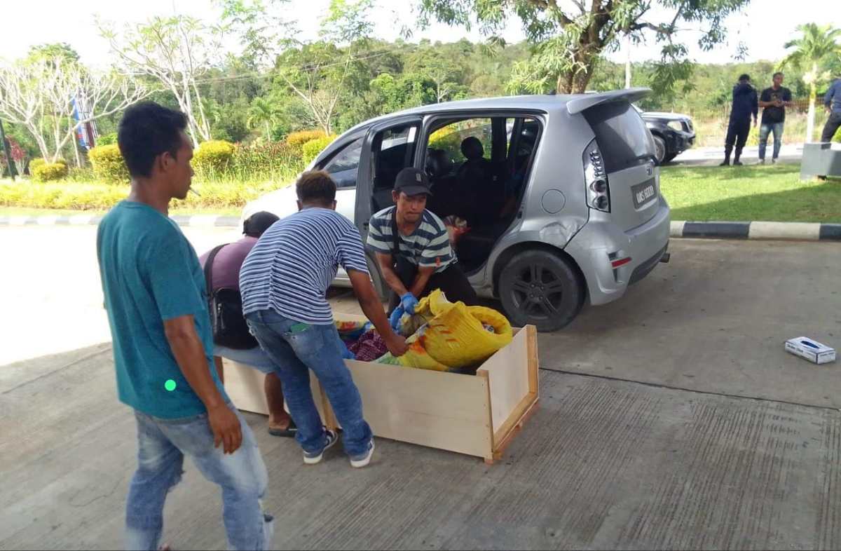 Jenazah tiba di area Titik Nol PLBN Aruk pada pukul 14.00 WIB dengan diangkut menggunakan mobil sedan di bangku belakang, dan beralaskan tilam atau matras.
