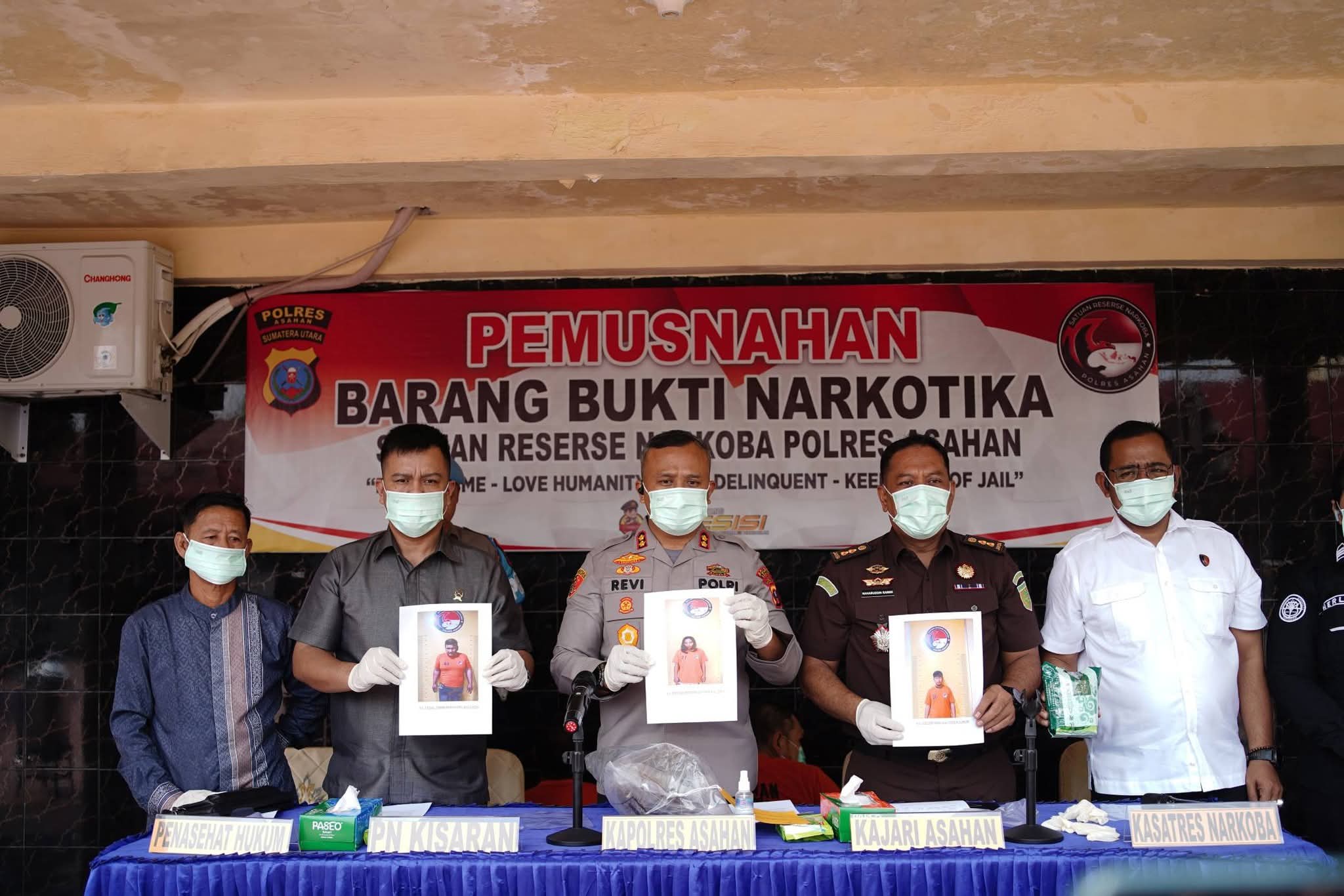 Dalam keterangannya, Kapolres Asahan AKBP Revi Nurvelani mengungkapkan bahwa barang bukti yang dimusnahkan merupakan hasil pengungkapan tiga laporan polisi selama periode Januari hingga Februari 2026, dengan total tiga orang tersangka laki-laki yang saat ini masih dalam proses penyidikan dan penyelidikan.
