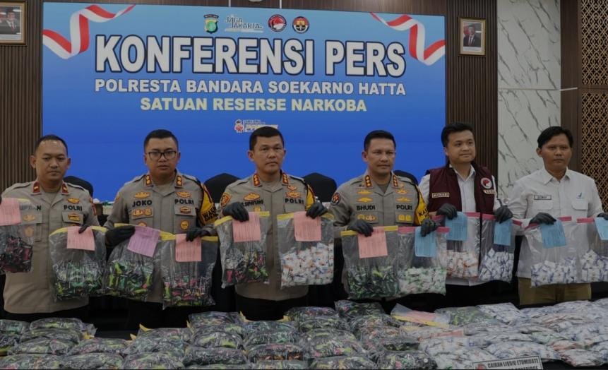 Jakarta – Satuan Reserse Narkoba Polresta Bandara Soekarno-Hatta (Soetta) berhasil mengungkap kasus peredaran cartridge vape berisi obat keras berbahaya (Okerbaya) jenis etomidate, dengan nilai ekonomi mencapai Rp 42,5 miliar.