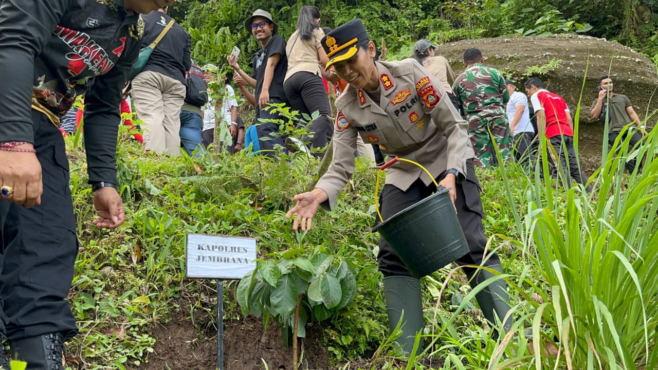 Kapolres Jembrana AKBP Kadek Citra Dewi Suparwati, S.H., S.I.K., M.I.K., menyampaikan bahwa keikutsertaan Polres Jembrana dalam kegiatan ini merupakan bentuk dukungan nyata terhadap program penghijauan serta komitmen Polri menjaga kelestarian alam.
