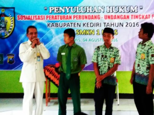 PB | Kediri – Dalam ciptakan masyarakat yang tertib berlalu lintas Polres Kediri. Kamis (1/9) Melaksanakan Sosialisasi tentang Undang Undang No 22 tahun 2009 tentang Lalu lintas dan Angkutan Jalan Raya kepada siswa SMKN Kras Kecamatan Kras Kabupaten Kediri. Dalam kegiatan ini Polres Kediri yang diwakili oleh Anggota Subbag Hukum Aiptu Hendrik dan didampingi oleh Bag Hukum Pemerintah Daerah Kabupaten Kediri memberikan materi tentang Undang Undang no 22 tahun 2009.