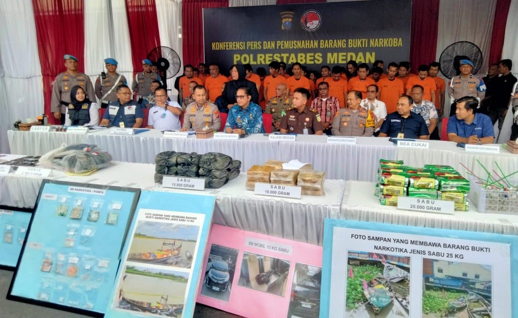 Dalam periode 42 hari terakhir, Polrestabes Medan berhasil mengungkap 35 kasus dengan 55 tersangka dan menyita 50 kg sabu. Dengan pengungkapan ini, polisi berhasil menyelamatkan sekitar 500 ribu jiwa dari bahaya narkoba, dengan nilai barang bukti mencapai kurang lebih 50 miliar rupiah.