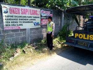 PB | Kediri – Untuk antisipasi terjadinya pencurian hewan, Polsek Gurah Polres Kediri memasang banner himbauan pencurian di hewan. Pemasangan banner itu ditempatkan di sudut desa di wilayah Kecamatan Gurah Kabupaten Kediri. Kapolsek Gurah AKP Totok Budi H melalui Kasi Humas Aiptu Sadelimen mengatakan, pemasangan banner itu untuk mengantisipasi terjadinya pencurian hewan. Selain itu, menjelang hari raya korban warga di himbau untuk waspada. “Untuk mengantisipasi terjadinya pencurian hewan warga diharap untuk waspada dan berhati-hati, ” terang Aiptu Sadelimen. Selain itu, pada malam hari warga juga dihimbau untuk waspada. Karena, rawan kejadian pencurian pada malam hari. “Menjelang hari raya idul adha kami menghimbau warga berhati-hati dan waspada, ” ungkapnya.(pid polres/red)