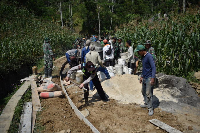 “Semoga kegiatan kebersamaan dalam TMMD ini, dapat merekatkan dan meningkatkan soliditas diantara TNI, Polri dan masyarakat. Kami selaku pemerintah desa akan selalu mendukung,” tutur Aris.