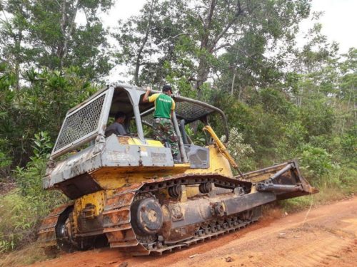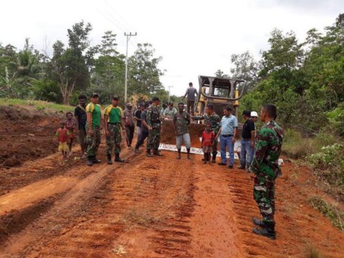Mayor Inf Sujarwo selaku Wadansatgas menjelaskan, “Selama ini anggota kami rutin melaksanakan pembinaan teritorial di Kampung Tanas, dan sering kali terkendala masalah akses jalan saat kondisi cuaca hujan. Maka kami berinisiatif untuk menggandeng perusahaan yang ada di sekitar Distrik Elikobel untuk berperan aktif membantu mempermudah akses jalan dengan menggunakan alat berat”.