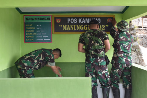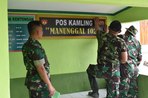 Banjarnegara – “Pos Kamling Manunggal 102” adalah nama bangunan Pos Ronda yang telah dibangun oleh TNI dan warga masyarakat Desa Pasegeran Kecamatan Pandanarum dalam program TNI Manunggal Membangun Desa Reguler 102 Banjarnegara 2018.