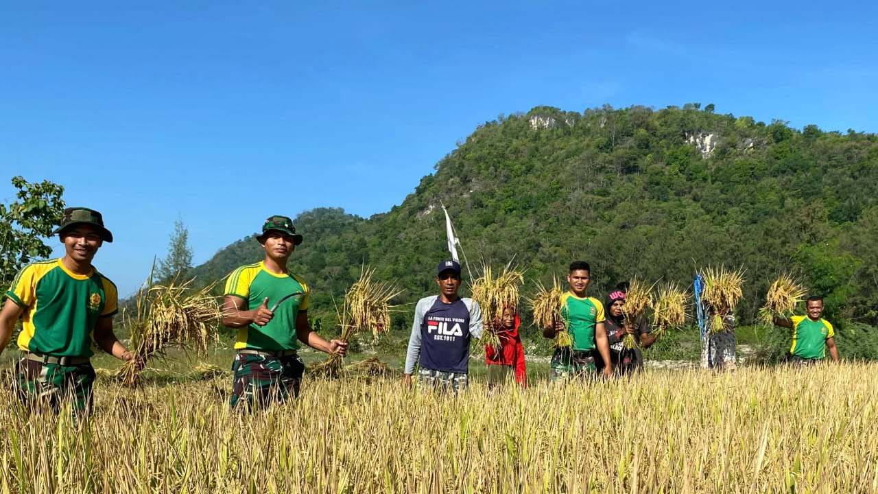 Dipimpin oleh Danpos Maubusa, Serka Marsel Efendi Nenotek, sejumlah prajurit Satgas turut terjun langsung ke sawah membantu proses panen yang dilakukan secara tradisional. Kegiatan ini merupakan bagian dari upaya Satgas untuk terus menjalin hubungan harmonis dan mempererat kemanunggalan TNI dengan rakyat.