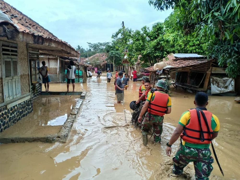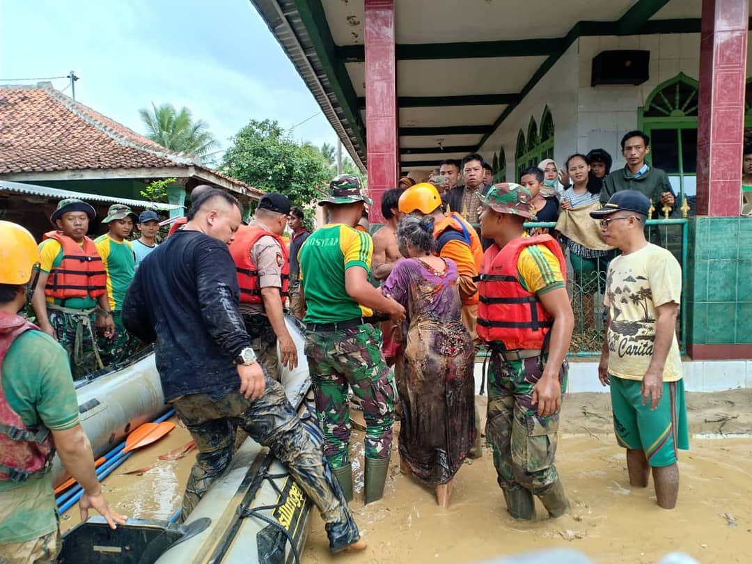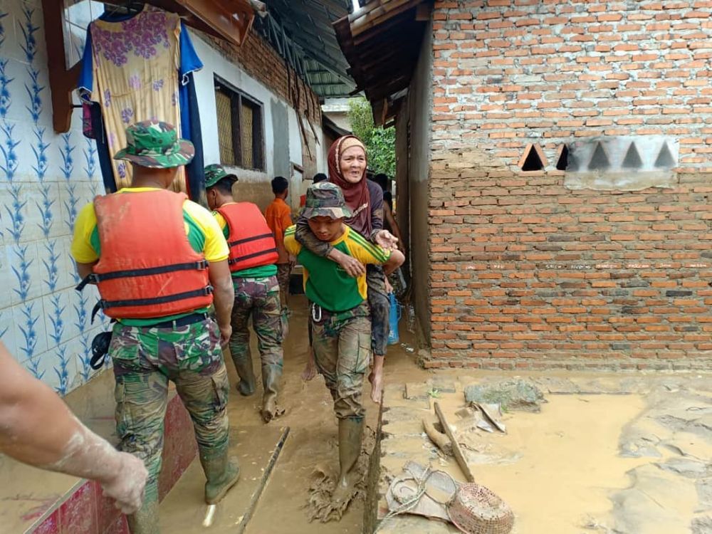 Lebak Gedong – Prajurit Batalyon Mandala Yudha Kostrad beserta aparat gabungan dan pemerintah daerah setempat serta warga yang terrjun langsung ke lokasi bencana banjir bandang bertempat di Kabupaten Lebak untuk membantu mengevakuasi warga yang terjebak di dalam rumah, Rabu (1/1/20).