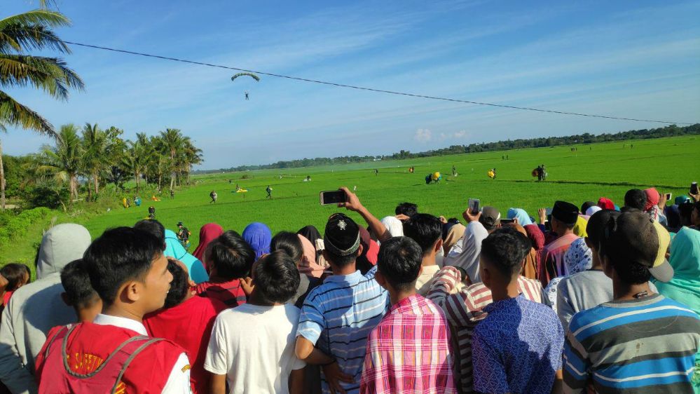 Sementara itu, antusiasme warga Kampung Simbang menyaksikan latihan terjun yang dilakukan oleh prajurit Brigif PR 3 Kostrad, karena selama ini masyarakat setempat hanya bisa menyaksikan kegiatan latihan terjun hanya melalui layar televisi. Tapi kali ini masyarakat dapat menyaksikan secara langsung. Terpantau masyarakat tumpah ruah menyaksikan latihan tersebut serta ucapan terimakasih dari masyarakat atas diselenggarakannya latihan terjun penyegaran semoga kedepannya Desa Simbang bisa dijadikan sebagai sarana latihan TNI khususnya Brigif Para Raider 3 Kostad.(penkostrad|red)
