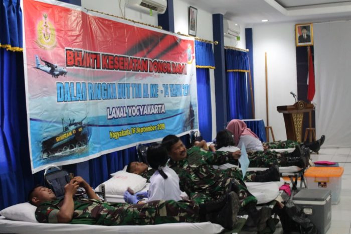Bhakti Kesehatan Donor Darah yang mengusung tema “Bersama Rakyat TNI AL Siap Membangun SDM Unggul, Fondasi Indonesia Maju” ini, terlaksana atas kerjasama antara Lanal Yogyakarta dengan Kantor Unit Tranfusi Darah (UTD) PMI Kota Yogyakarta.