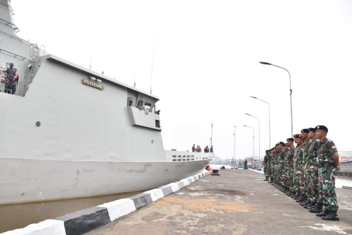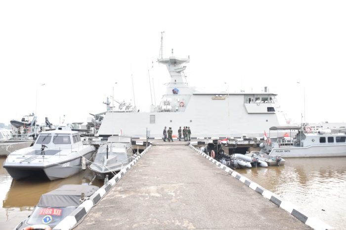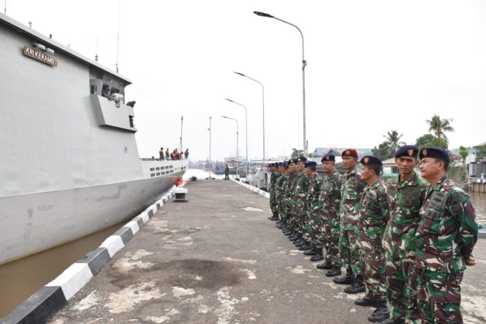 Pontianak -Prajurit Pangkalan Utama TNI Angkatan Laut (Lantamal) XII Pontianak melaksanakan Merflug keberangkatan KRI Kerambit (KRB)–627 bertempat di Dermaga Satuan Patroli (Satrol) Lantamal XII Pontianak Jalan Komodor Yos Sudarso No.1 Kalimantan Barat, Kamis (22/8/2019).