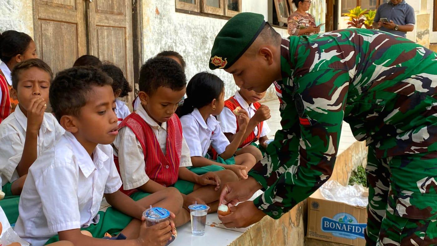 Dalam kegiatan tersebut, prajurit Pos Maubusa membagikan makanan ringan berupa roti, telur rebus, dan air minum kepada para siswa-siswi SD Inpres Betaus. Selain berbagi makanan, para prajurit juga memberikan motivasi dan semangat belajar agar anak-anak tetap rajin menuntut ilmu demi menggapai cita-cita, serta menanamkan nilai cinta tanah air sejak dini.