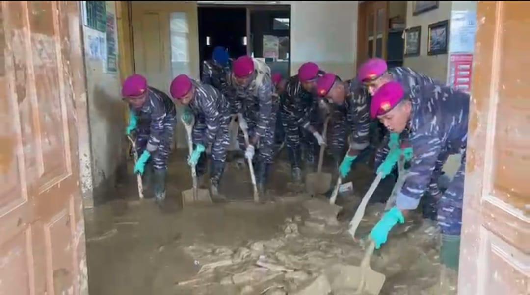 Aceh Tamiang, 14 Desember 2025,— Prajurit TNI AL dari Korps Marinir dalam hal ini Yonif 8 Marinir yang tergabung dalam Satgas Penangulangan Bencana yang melanda sejumlah wilayah di Kabupaten Aceh Tamiang, terus melanjutkan upaya pemulihan RSUD Aceh Tamiang. Jum’at (12/12).