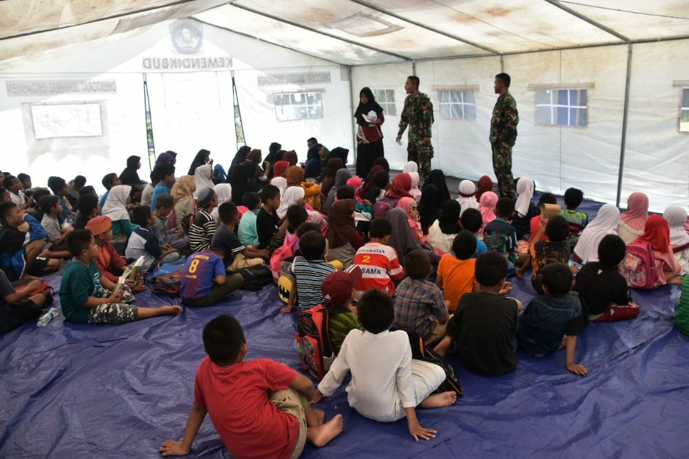 Ditambahkan oleh Kopda Raulman bahwa para anak-anak melaksanakan proses belajar-mengajar dengan ruang kelas sementara, karena bangunan sekolah mereka telah rusak. Selain itu, anak-anak juga tidak menggunakan pakaian sekolah resmi seperti yang biasa mereka kenakan sebelum terjadi gempa.