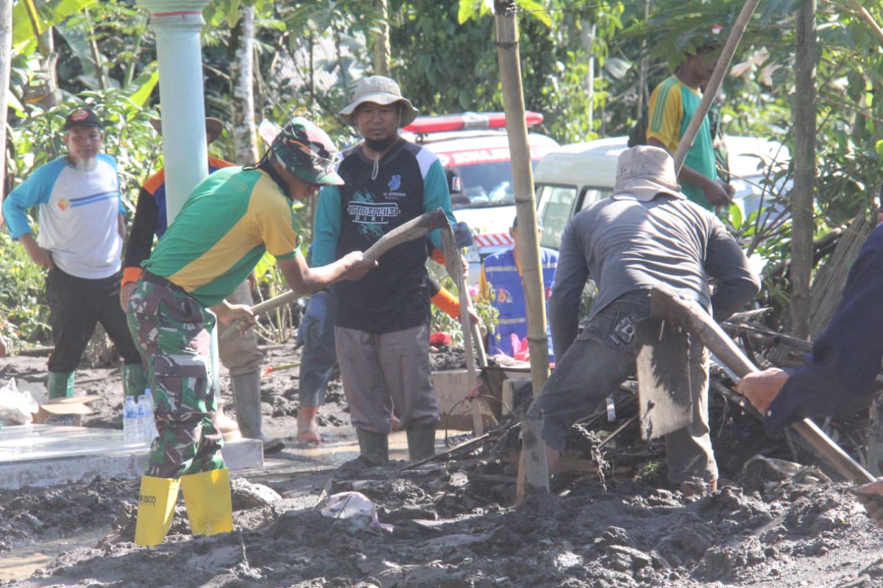 Lumajang – Prajurit TNI, warga dan relawan masih berjibaku dengan lumpur yang menutupi rumah warga di Desa Supiturang, Kecamatan Pronojiwo, pasca erupsi Gunung Semeru. Dengan penuh semangat, mereka bahu-membahu membersihkan material vulkanik yang menghambat aktivitas masyarakat, Senin (25/11/2025).