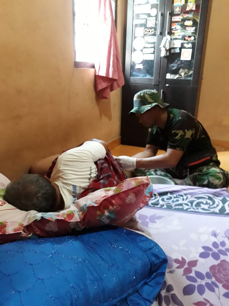 Lombok Barat – Prajurit dari Satuan Kesehatan TNI yang tergabung dalam Komando Tugas Gabungan Terpadu (Satkes Kogasgabpad) Rehabilitasi dan Rekonstruksi melaksanakan operasi hemoroid (benjolan daging pasca operasi) terhadap Bapak Prayit warga yang tinggal di BTN Pakel Permai Gunungsari, Jl. Raya Sandik No. 78, Kabupaten Lombok Barat, Nusa Tenggara Barat, Rabu (17/10/2018).