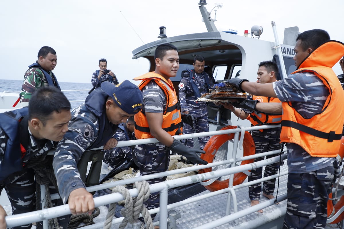 Serpihan barang-barang tersebut diantaranya, kabin pesawat, pelampung, pakaian wanita, sandaran kursi dan kursi pesawat termasuk potongan tubuh manusia. Selanjutnya, barang-barang tersebut di bawa ke Dermaga Jakarta International Container Terminal II (JICT II) Tanjung Priok, Jakarta Utara, untuk diserahkan ke Posko Koarmada I TNI AL.