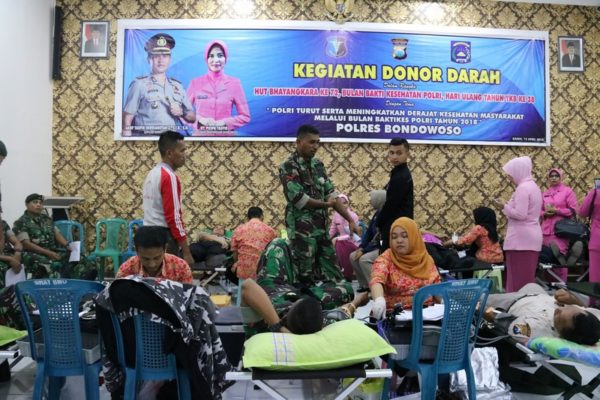 PB|Bondowoso – Polres Bondowoso menggelar kegiatan bakti sosial donor darah dalam rangka Bulan Bakti Kesehatan Polri tahun 2018 bertempat di Aula Endra Dharmalaksana Polres Bondowoso, Kamis. (12/4/18).