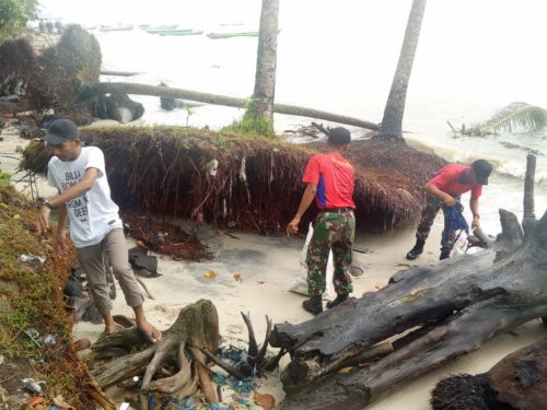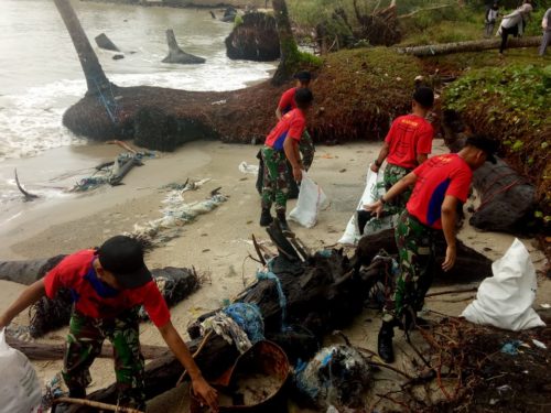 Tarakan – Prajurit Yonmarhanlan XIII Tarakan, bersama mahasiswa dari Universitas Borneo Tarakan bersama-sama membersihkan pantai Amal baru di Tarakan Kalimantan Utara. Senin (20/08/2018).