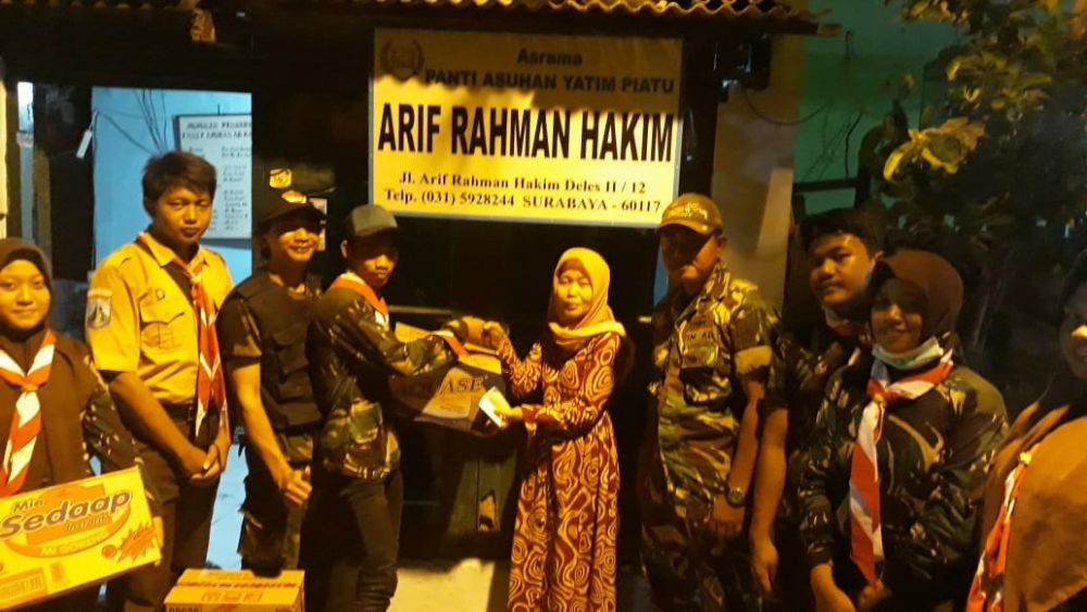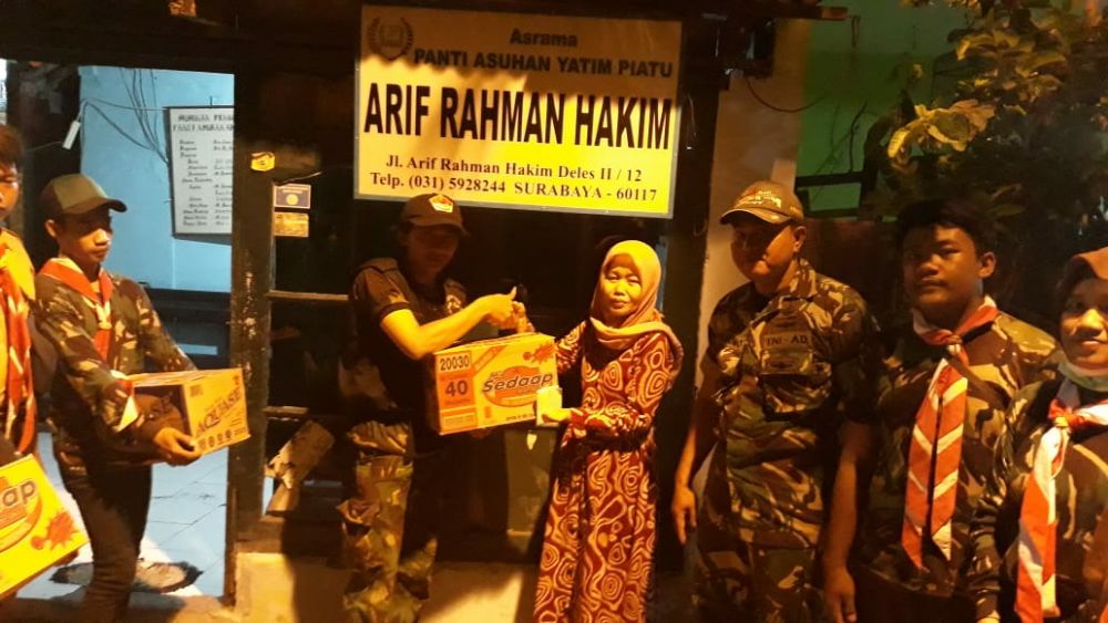 Surabaya – Dalam rangka menyambut Hari jadi pramuka Saka Wira Kartika (SWK) pada hari Rabu 17 Oktober 2018 malam anggota Saka Wira Kartika Gajah Mada dan Srikandi binaan Koramil 0831/04 Sukolilo Kota Surabaya melaksanakan Baksos (Bakti Sosial) ke Yayasan Anak Yatim Piatu Arif Rahman Hakim Sukolilo.