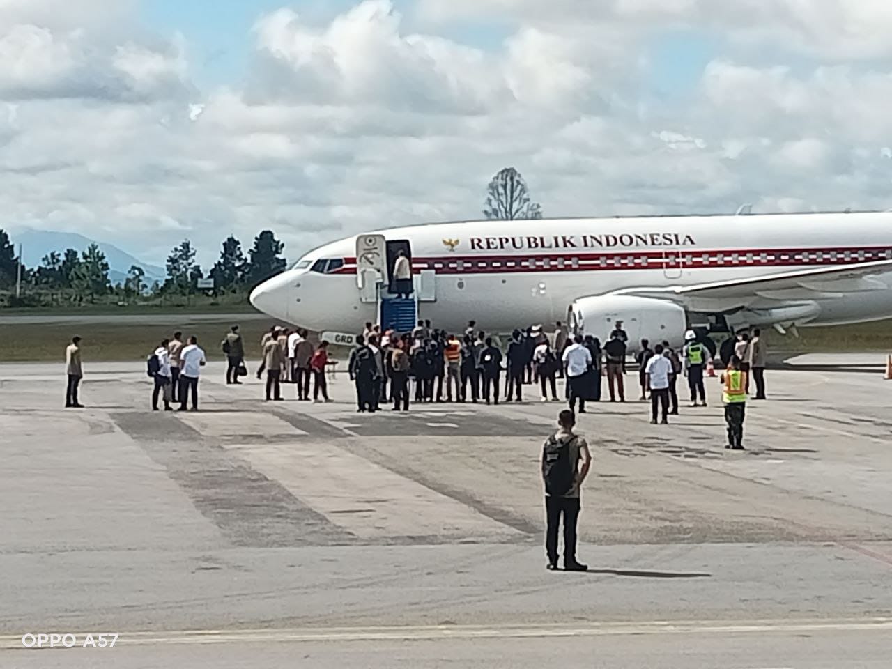 Tapanuli Utara – Presiden RI Bapak Dr. Prabowo Subianto tiba di Bandara Udara Sisingamangaraja XII Silangit. Senin,(01/12/2025).Kedatangan RI 1 menggunakan Pesawat Kepresidenan RI PK-GRD jenis BBJ dalam rangka peninjauan langsung kondisi dan penanganan bencana alam di Kabupaten Tapanuli Tengah.