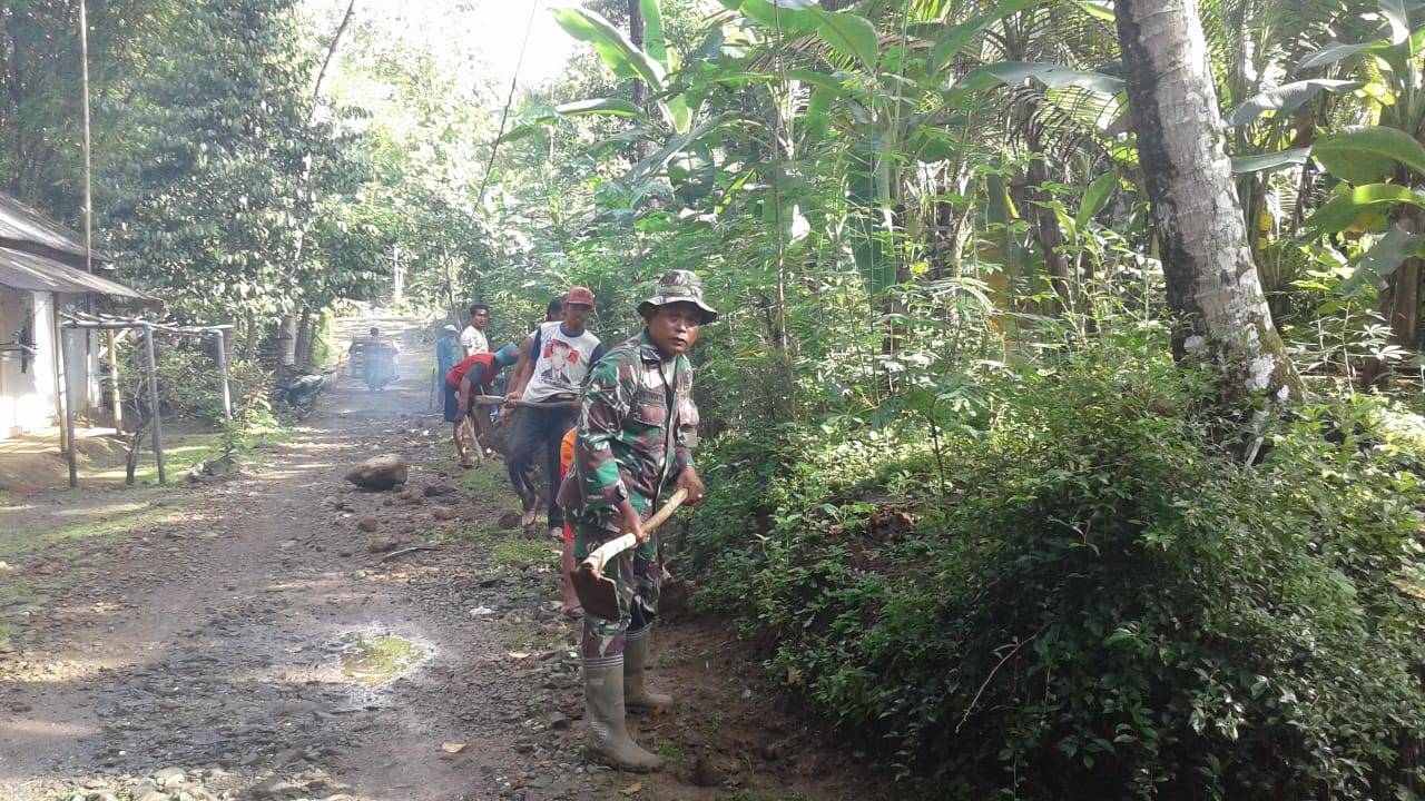 Penyumbatan inilah yang membuat Serda Miswanto mengajak kepada seluruh warga khususnya RT 03/01 Dusun Karang Benda untuk segera membersihkan jalan dan saluran air dari sampah dan rerumputan liar yang menghalanginya.