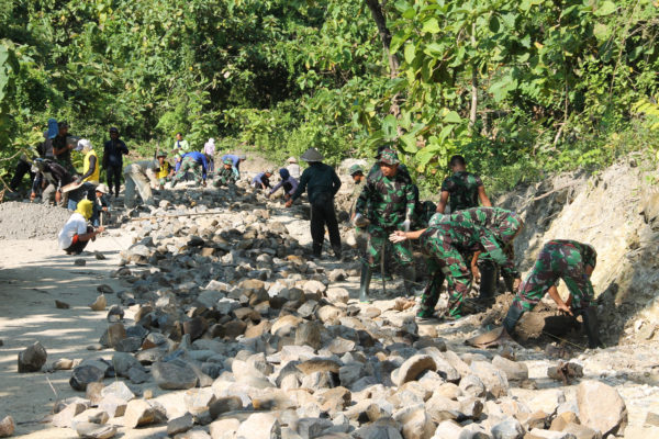 Dandim 0810/Nganjuk Letkol Arh Sri Rusyono. S, S.E mengatakan, pengerjaan jalan yang dikerjakan oleh para personel Satgas bersama-sama dengan masyarakat saat ini sudah sampai pemasangan batu yang sudah mencapai 2000 meter hingga pengaspalan. “Mudah-mudahan dengan cuaca yang cerah dalam beberapa hhari kedepan bisa mempercepat proses pemasangan batu,”ujarnya.