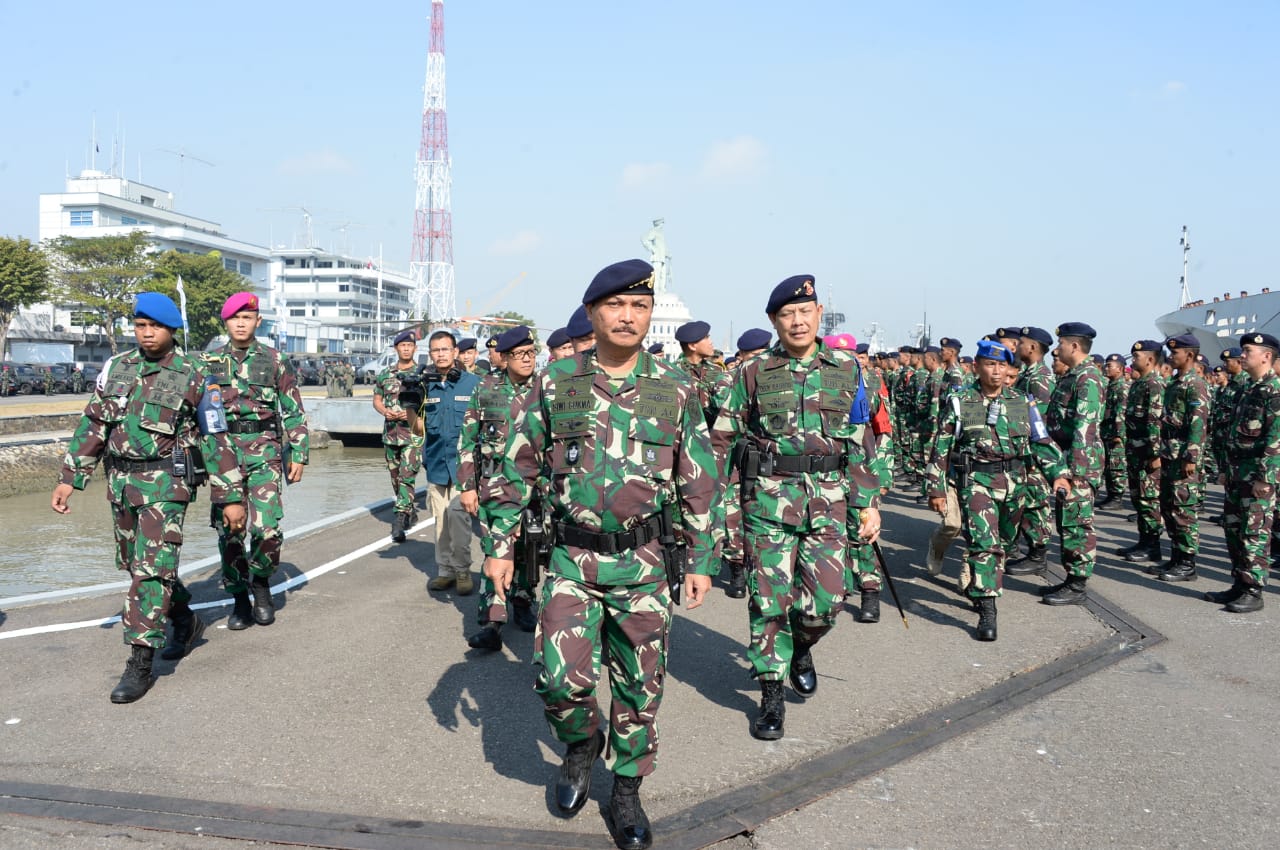 Surabaya – Ribuan Prajurit TNI Angkatan Laut yang berjumlah 6.534 melaksanakan Apel Gelar Pasukan dalam rangka Manuvra Lapangan (Manlap) Latihan Puncak TNI AL Armada Jaya XXXVII tahun 2019, bertempat di Dermaga Ujung Komando Armada (Koarmada) II Surabaya, Selasa (9/7). Bertindak selaku Inspektur Upacara (Irup) Kepala Staf Angkatan Laut (Kasal) Laksamana TNI Siwi Sukma Adji, S.E., M.M., yang langsung melaksanakan inspeksi terhadap kesiapan unsur dan prajurit TNI AL.