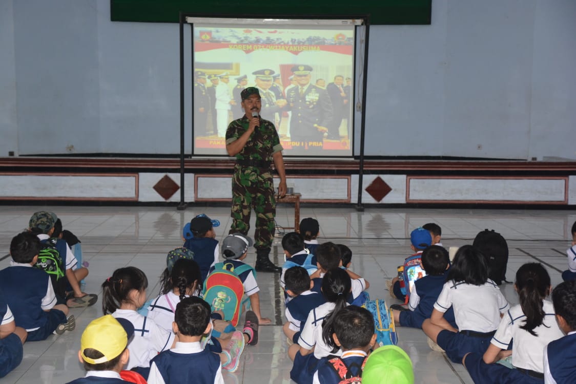 Menurut pimpinan rombongan, bahwa kunjungannya ke Makorem 071/Wk ini untuk memperkenalkan kepada anak-anak didiknya tentang TNI. Sehingga dengan hak demikian, mereka anak-anak didiknya akan timbul rasa cinta dan bangga terhadap TNI.