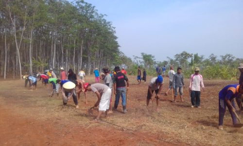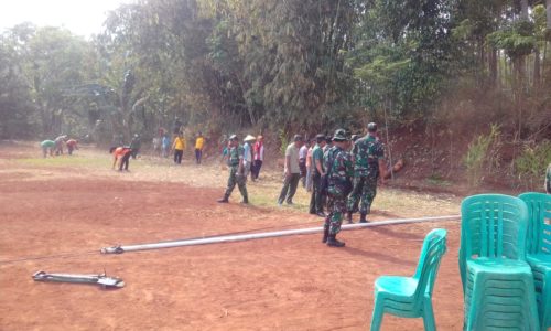 Batang – Kepala Desa (Kades) Durenombo, H. Sireng, Kecamatan Subah, Kabupaten Batang, memimpin langsung warganya untuk membersihkan lapangan desa yang akan dipergunakan sebagai lokasi upacara pembukaan TMMD reguler ke-103 Tahun 2018.
