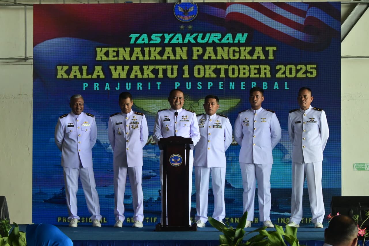 Komandan Puspenerbal dalam amanatnya yang dibacakan Inspektur Puspenerbal mengucapan selamat kepada seluruh personel yang mendapatkan kehormatan kenaikan pangkat satu tingkat lebih tinggi pada kala waktu oktober 2025 ini.
