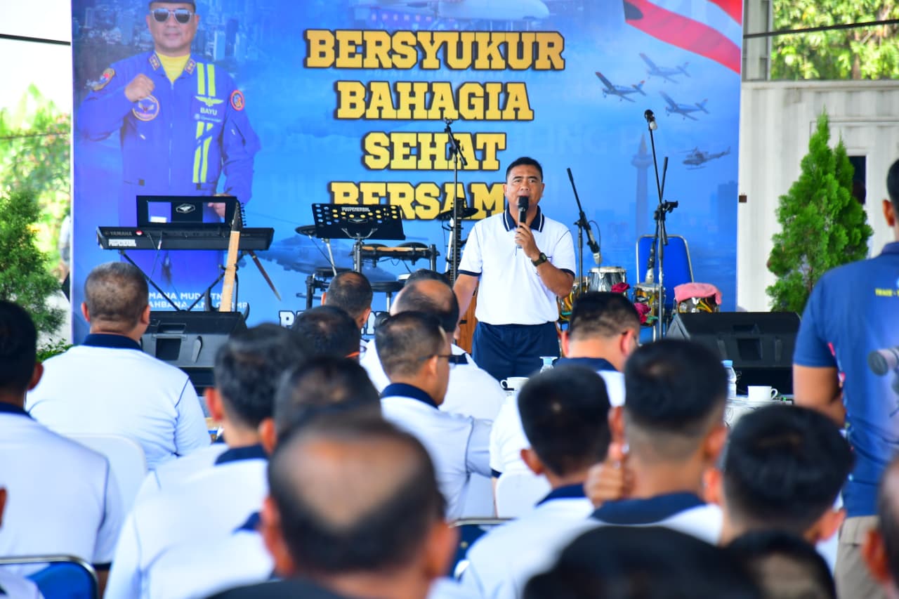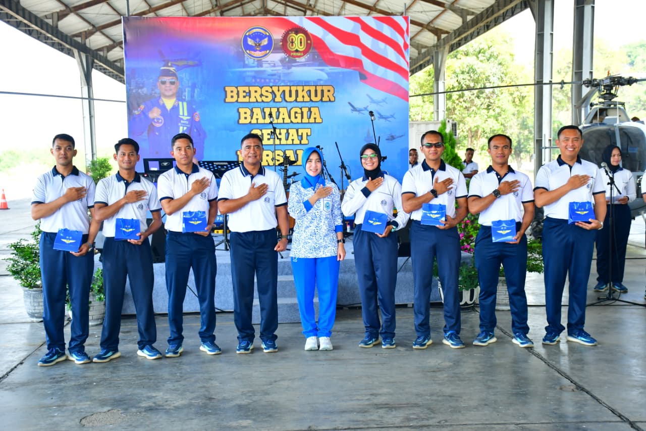 Tasyakuran Penyambutan Tim Flypass dan Sailing Pass HUT ke-80 TNI Tahun 2025 bertema “Bersyukur Bahagia Sehat Bersama” ini, dihadiri Komandan Puspenerbal, Laksda TNl Bayu Alisyahbana, Wadan Puspenerbal, Laksma TNI Catur Nur Ardiantoro, Irpuspenerbal, Laksma TNl Johannes Tambunan, para Direktur dan Kasatker jajaran Puspenerbal lainnya.