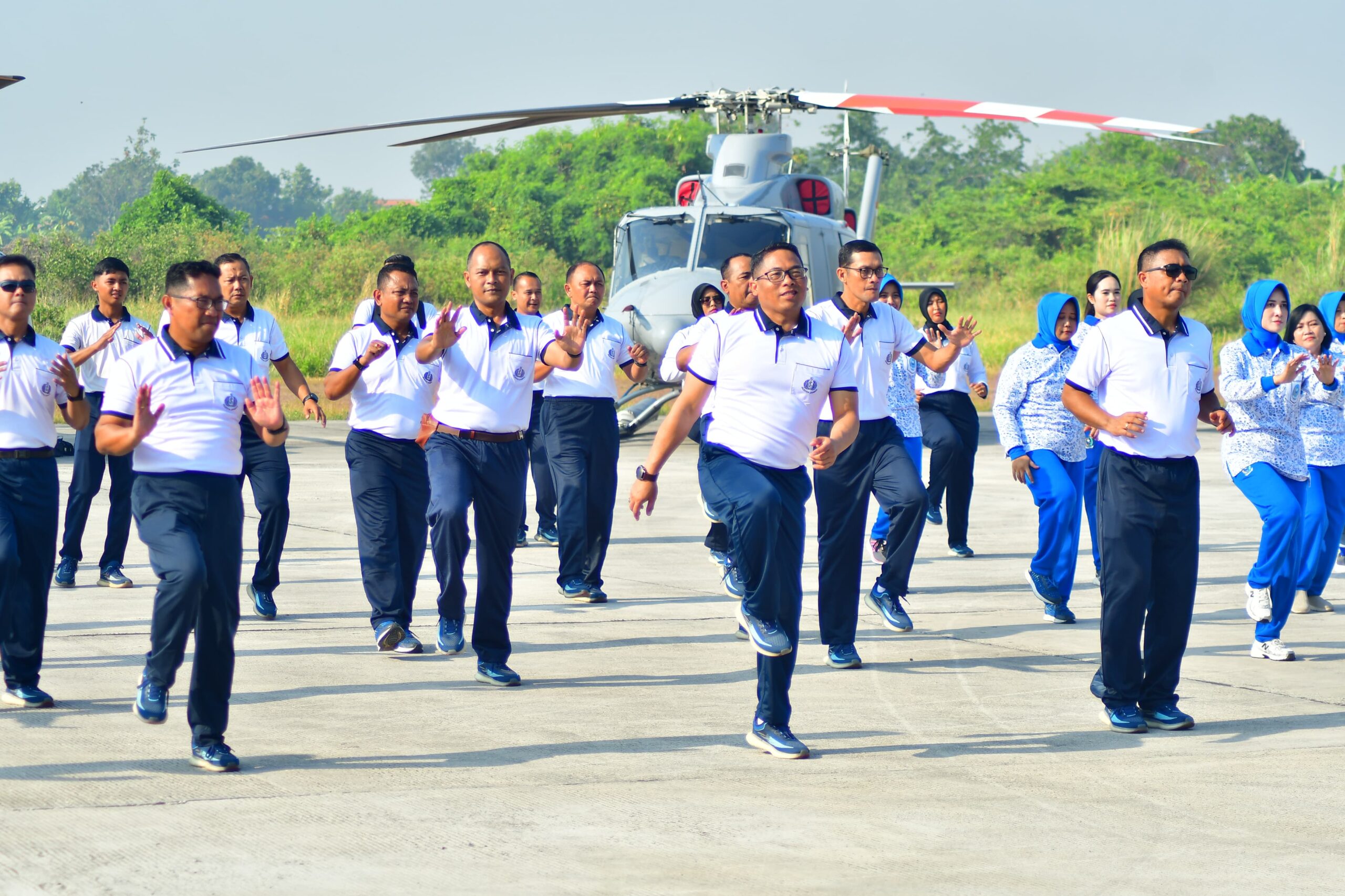 Setelah itu dilanjutkan senam dan jalan santai dengan rute Shelter Skuadron Udara 400 – Hanggar Fasharkan – Baseops Lanudal Juanda – Jalan Protokol dan finish di Shelter Skuadron Udara 400 dilanjutkan ramah tamah. Pada kesempatan itu, Komandan Puspenerbal menyerahkan taliasih kepada anak-anak Panti Asuhan Laksamana R. Moeljadi Juanda.