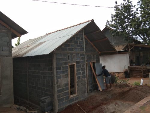 Meski sudah berdiri kokoh, rumah milik buruh serabutan ini belum dilengkapi dengan daun pintu dan jendela. “Sementara ya ditutup dulu dengan lembaran seng, mungkin baru besok bisa dipasang pintu maupun jendela,” ungkap Carib, Sabtu (27/10/18).