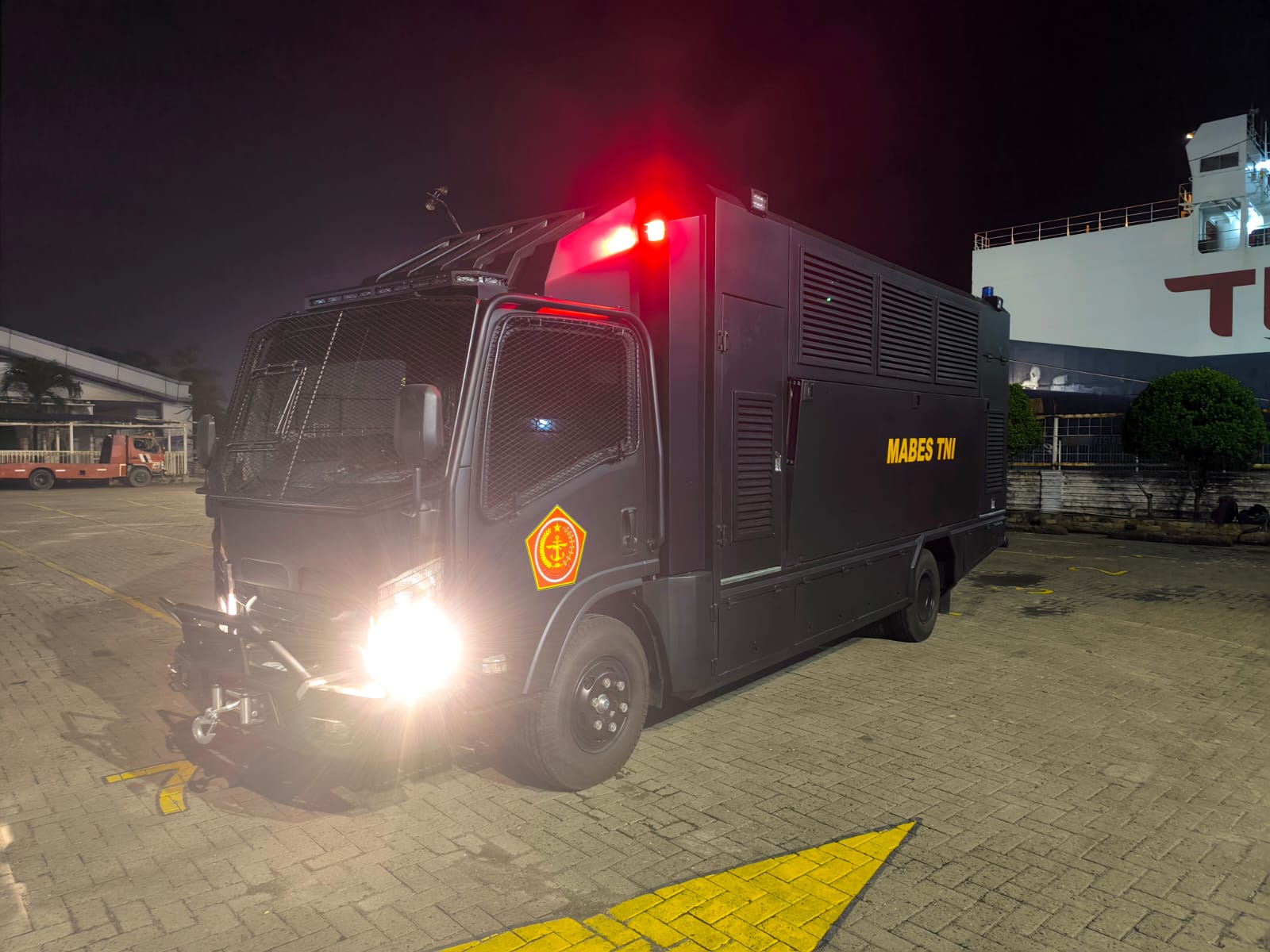 Medan – Kendaraan Dapur Lapangan (Durlap) bantuan Panglima TNI untuk Kodam I/BB tiba di Pelabuhan Belawan, Medan, Sabtu (06/12/2025). Setelah proses penurunan, kendaraan tersebut langsung dibawa dan diamankan sementara di Bekangdam I/BB sebagai bagian dari persiapan awal sebelum digunakan dalam tugas penanggulangan bencana.