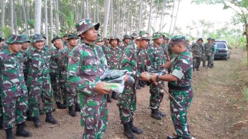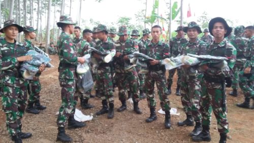 Batang – Dukungan moril bagi Satuan Penugasan (Satgas) TMMD Reguler ke-103 Batang berupa Perlengkapan Perorangan Lapangan (Kaporlap), sudah didistribusikan kepada para prajurit di Lapangan Desa Cluwuk Kecamatan Subah. Senin (15/10/18).