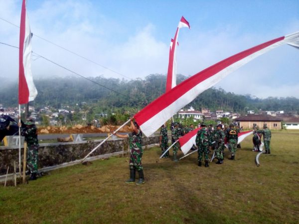 ”Kami sudah menyusul perangkat desa dan warga yang mulai kemarin sudah mulai memasang umbul-umbul di beberapa lokasi TMMD. Umbul-umbul dari Kodim, juga sudah didatangkan dan mulai dipasang anggota kami” terangnya.